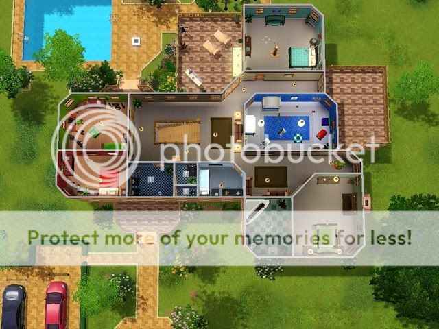 I did some editing to the House, I added a Library and some steps in the House down to the Basement, the basement is now smaller as I sold a lot of the Gems and put the remaining ones in a Chest for safe keeping. Marta lives down there and her area has received a make over. The garden is what all you Americans or other nations call an 'English Garden' which is basically a big field with big trees and grass in! :) With a few flowers of course but I admit my own garden is a lot of grass with a few trees and a border so I guess that is similar. Wow I do ramble a bit! Upstairs has a balcony and has stayed the same though, here are some shots of the house followed by what has happened.